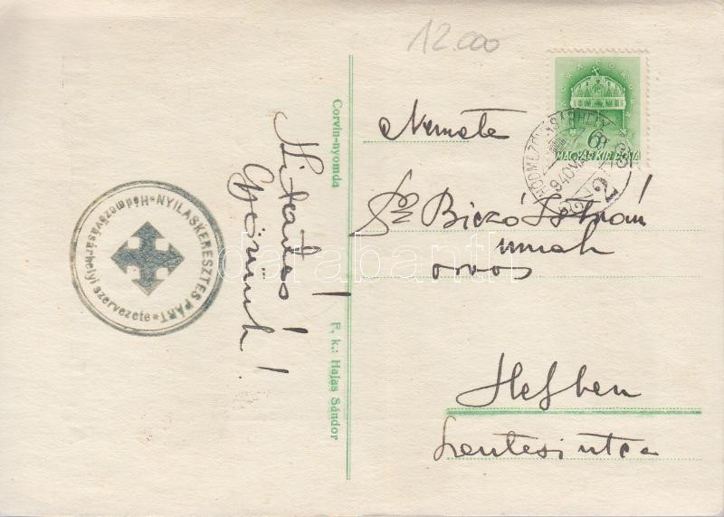 A Nyilaskeresztes Párt hódmezővásárhelyi szervezetének húsvéti üdvözlő... https://www.darabanth.com/de/190-Fernauktion/190.0/Ansichtskarten/Propaganda~800108/A-Nyilaskeresztes-Part-hodmezovasarhelyi-szervezetenek-husveti-udvozlolapja-irredenta-1~II714445