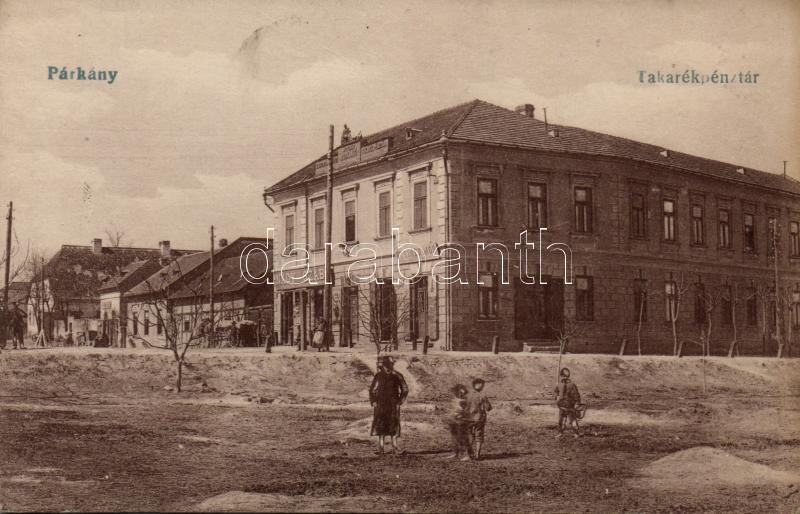 Párkány, takarékpénztár, Steiner Mór üzlete / savings bank, shops https://www.darabanth.com/de/190-Fernauktion/190.0/Ansichtskarten/Slowakei~400007/Parkany-takarekpenztar-Steiner-Mor-uzlete-savings-bank-shops~II713338