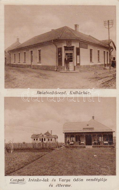 Beschreibung: Csopak, Balatonkövesd; kultúrház, Irénke lak, Varga Ödön vendéglője