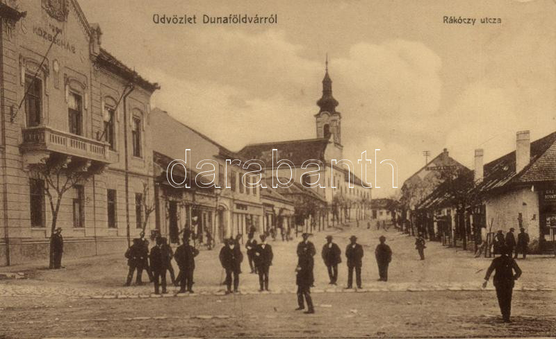 Dunaföldvár Rákóczi utca, községháza https://www.darabanth.com/de/190-Fernauktion/190.0/Ansichtskarten/Ungarn~400005/Dunafoldvar-Rakoczi-utca-kozseghaza~II714924