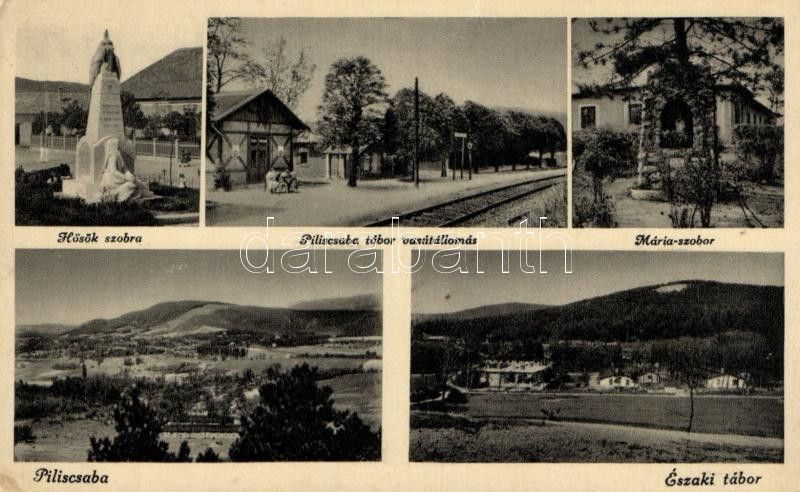 Piliscsaba Hősök szobra, vasútállomás, Mária szobor, Északi tábor (EK) https://www.darabanth.com/de/190-Fernauktion/190.0/Ansichtskarten/Ungarn~400005/Piliscsaba-Hosok-szobra-vasutallomas-Maria-szobor-Eszaki-tabor-EK~II717647