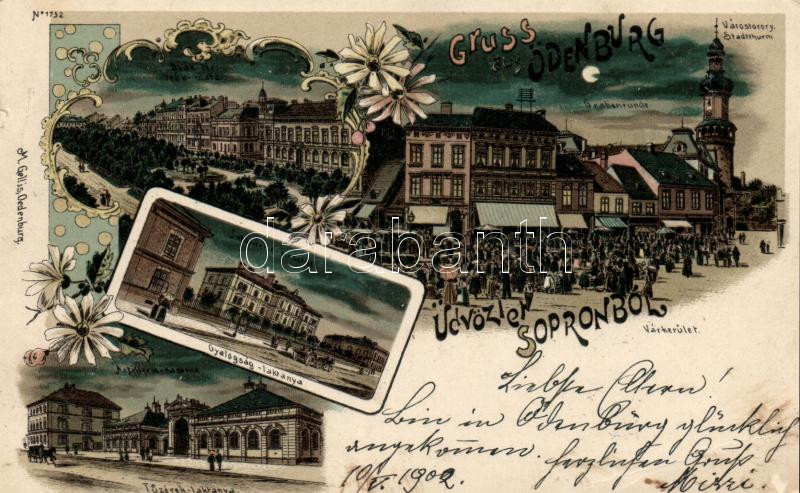 Sopron, Deák tér, Várostorony, Várkerület, Gyalogsági és tüzérségi lak... https://www.darabanth.com/de/190-Fernauktion/190.0/Ansichtskarten/Ungarn~400005/Sopron-Deak-ter-Varostorony-Varkerulet-Gyalogsagi-es-tuzersegi-laktanya-floral-litho~II714913