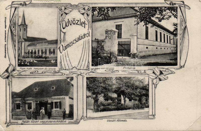 Vámoscsalád Pollák Albert vegyeskereskedése, vasútállomás, Art Nouveau... https://www.darabanth.com/de/190-Fernauktion/190.0/Ansichtskarten/Ungarn~400005/Vamoscsalad-Pollak-Albert-vegyeskereskedese-vasutallomas-Art-Nouveau-EK~II713961
