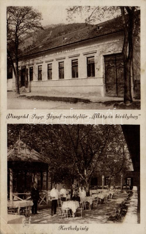 Visegrád Papp József vendéglője Mátyás királyhoz, kerthelyiség (EB) https://www.darabanth.com/de/190-Fernauktion/190.0/Ansichtskarten/Ungarn~400005/Visegrad-Papp-Jozsef-vendegloje-Matyas-kiralyhoz-kerthelyiseg-EB~II714502