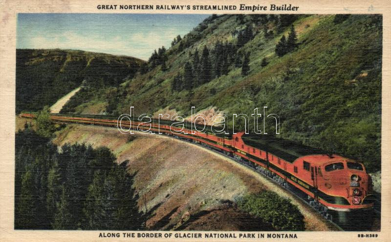 Glacier National Park in Montana, Great Northern railway's streamlined... https://www.darabanth.com/de/190-Fernauktion/190.0/Ansichtskarten/Vereinigte-Staaten-von-Amerika~800047/Glacier-National-Park-in-Montana-Great-Northern-railways-streamlined-Empired-Builder-EK~II717196