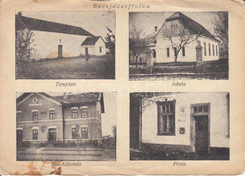 Beschreibung: Újnagyfény (Bácsjózseffalva) railway station, post office, school, church (b)