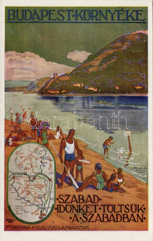 Budapest környéke, MÁV belföldi turisztikai reklám / Hungarian State R... https://www.darabanth.com/de/190-Fernauktion/190.0/Ansichtskarten/Werbungen~800111/Budapest-kornyeke-MAV-belfoldi-turisztikai-reklam-Hungarian-State-Railways-tourism-campaign-~II715424