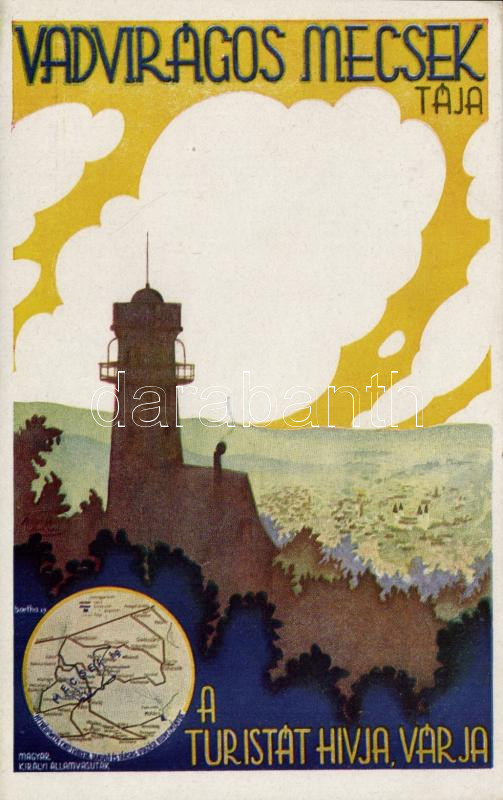 Vadvirágos Mecsek, MÁV turisztikai reklám / Hungarian State Railways t... https://www.darabanth.com/de/190-Fernauktion/190.0/Ansichtskarten/Werbungen~800111/Vadviragos-Mecsek-MAV-turisztikai-reklam-Hungarian-State-Railways-tourism-campaign-s-Bartha~II715391