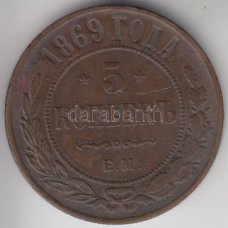 Russia 1869EM 5 Kopeks ... https://www.darabanth.com/de/190-Fernauktion/190.0/Numismatik/Auslandische-Munzen~600012/Cari-Oroszorszag-1869EM-5k-Cu-II-Sandor-T2-3Cbr3ERussia-1869EM-5-Kopeks-Copper-Alexander-II-~II714422