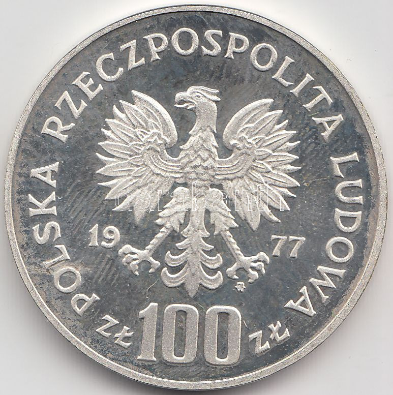 Pola... https://www.darabanth.com/de/190-Fernauktion/190.0/Numismatik/Auslandische-Munzen~600012/Lengyelorszag-1977-100Zl-Ag-Wladyslaw-Reymont-probaveret-TPP-3Cbr3EPoland-1977-100-Zlotych-Ag~II715183