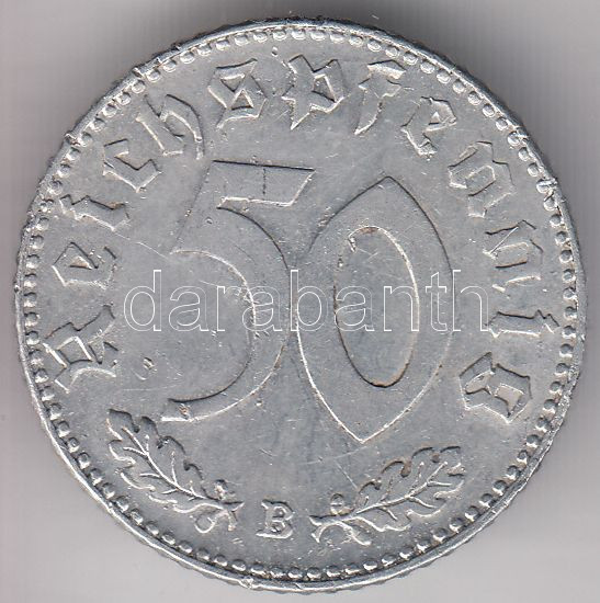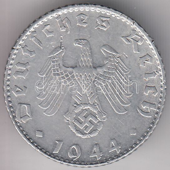 German Third Reich 1944B 50 Reich... https://www.darabanth.com/de/190-Fernauktion/190.0/Numismatik/Auslandische-Munzen~600012/Nemet-3-Birodalom-1944B-50pf-Al-T2-3Cbr3EGerman-Third-Reich-1944B-50-Reichspfennig-Al-CXf~II715280