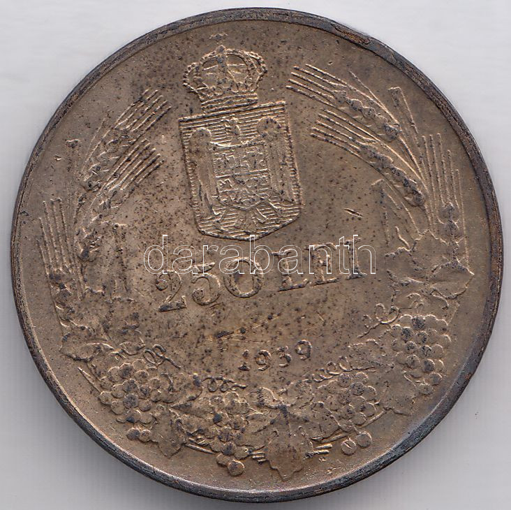 Beschreibung: Románia 1939. 250L Ag "II. Károly" T:2-