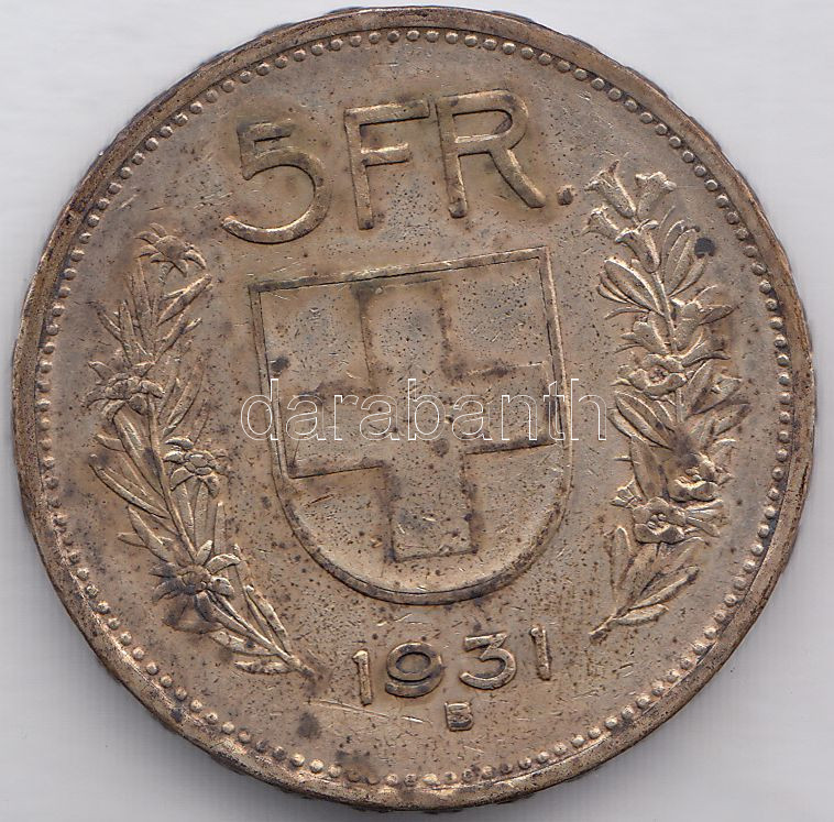 Switzerland 1931B. 5 Francs Ag C:VF https://www.darabanth.com/de/190-Fernauktion/190.0/Numismatik/Auslandische-Munzen~600012/Svajc-1931B-5Fr-Ag-T2--3Cbr3ESwitzerland-1931B-5-Francs-Ag-CVF~II712976