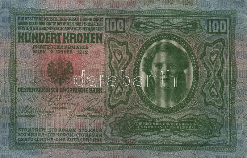 1912. 100K piros "Magyarország" körbélyegzéssel T:II- https://www.darabanth.com/de/190-Fernauktion/190.0/Numismatik/Ungarische-Banknoten~600007/1912-100K-piros-Magyarorszag-korbelyegzessel-TII-~II716499