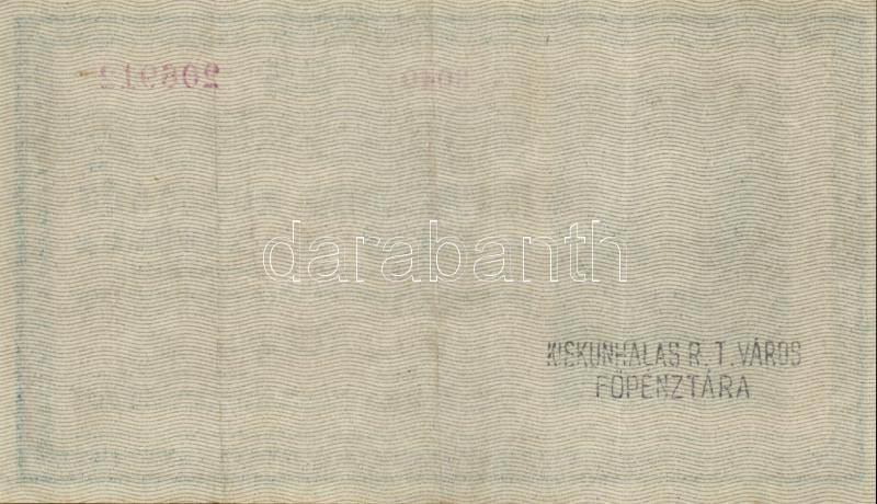 1918. 25K "3040" hullámos hátlap "KISKUNHALAS R.T. VÁROS FŐPÉNZTÁRA" p... https://www.darabanth.com/de/190-Fernauktion/190.0/Numismatik/Ungarische-Banknoten~600007/1918-25K-3040-hullamos-hatlap-KISKUNHALAS-RT-VAROS-FOPENZTARA-pecsetelessel-TIII~II712852