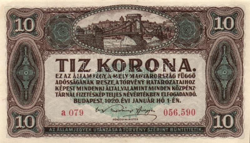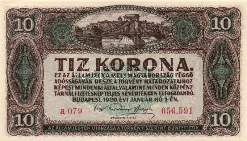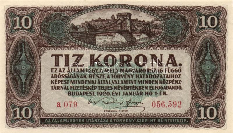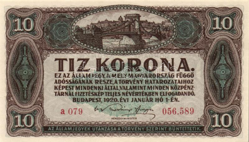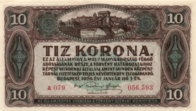 1920. 10K (5x) sorszámkövető T:I https://www.darabanth.com/de/190-Fernauktion/190.0/Numismatik/Ungarische-Banknoten~600007/1920-10K-5x-sorszamkoveto-TI~II712889