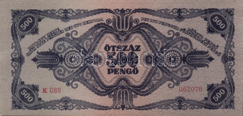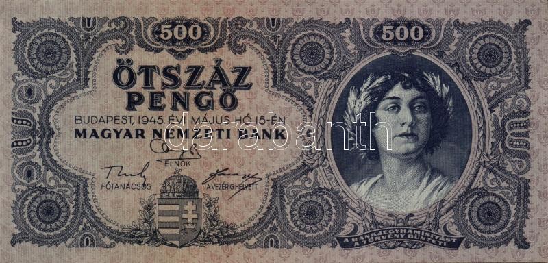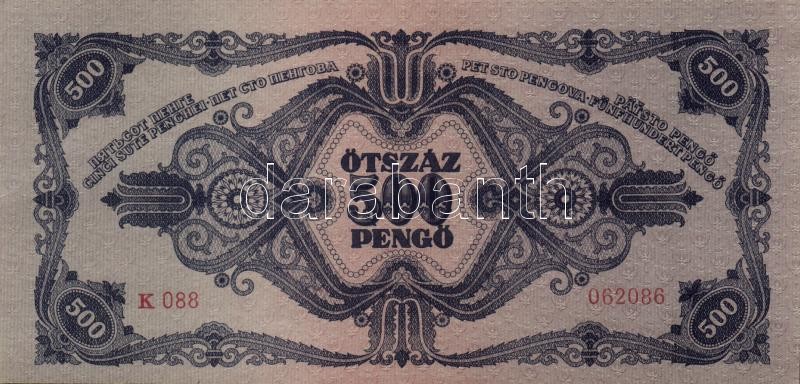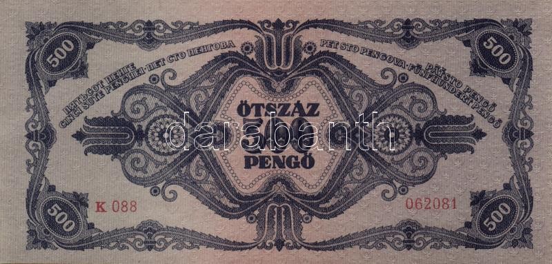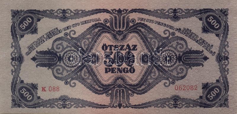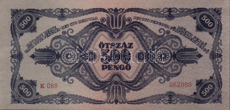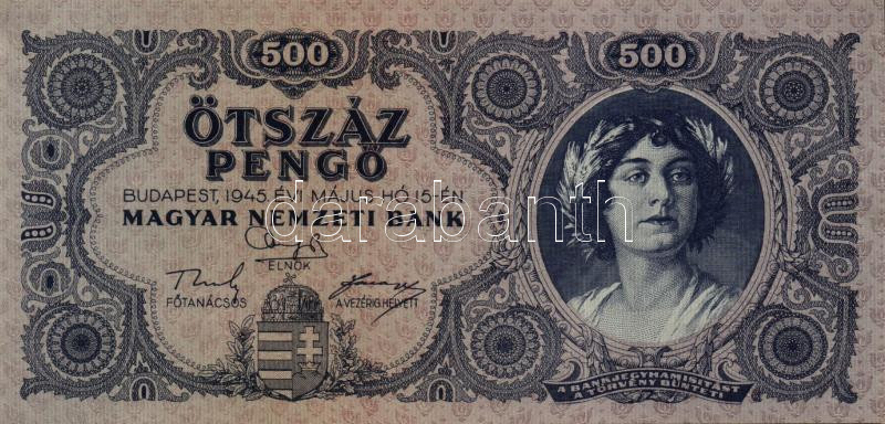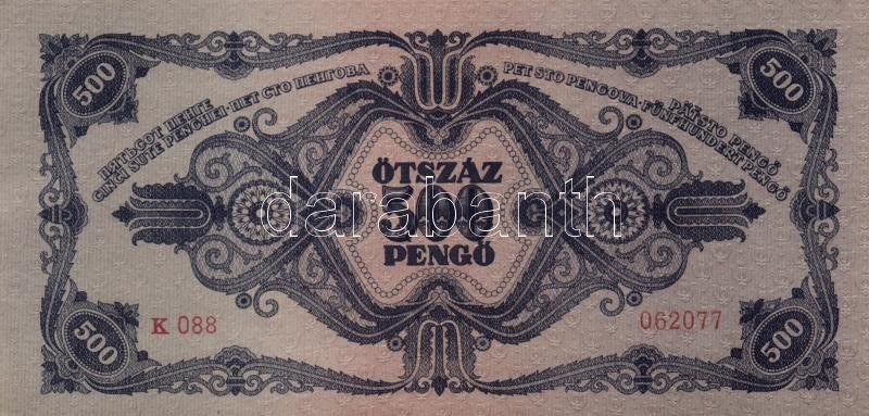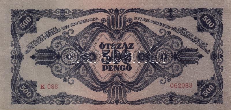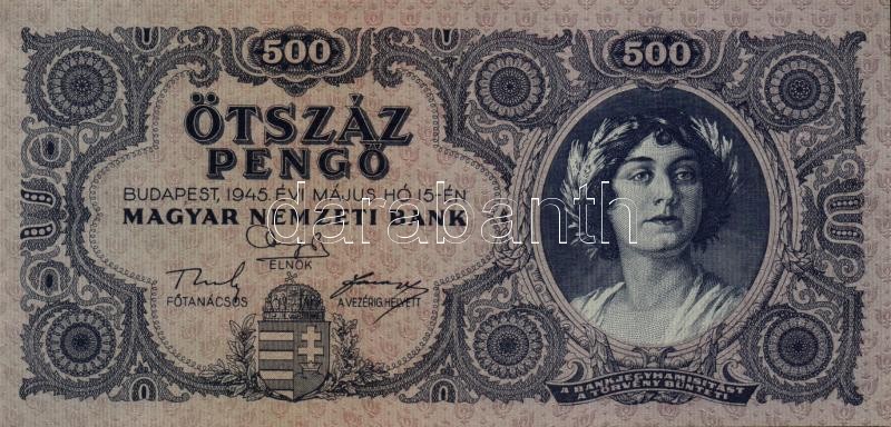 1945. 500P (10x) egymásutáni sorszámmal! T:I- (hajtatlanok) https://www.darabanth.com/de/190-Fernauktion/190.0/Numismatik/Ungarische-Banknoten~600007/1945-500P-10x-egymasutani-sorszammal-TI-hajtatlanok~II714374