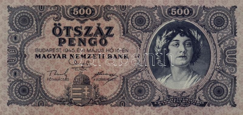 1945. 500P (3x) egymásutáni sorszámmal! T:I- (hajtatlanok) https://www.darabanth.com/de/190-Fernauktion/190.0/Numismatik/Ungarische-Banknoten~600007/1945-500P-3x-egymasutani-sorszammal-TI-hajtatlanok~II714371