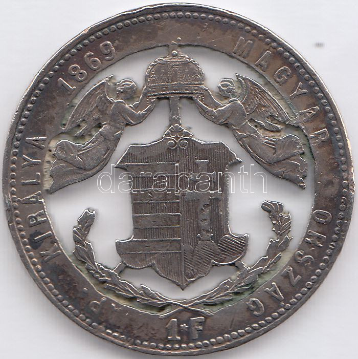 1869GYF 1Ft Ag a címer és az angyalok kivágva T:3 https://www.darabanth.com/de/190-Fernauktion/190.0/Numismatik/Ungarische-Munzen~600008/1869GYF-1Ft-Ag-a-cimer-es-az-angyalok-kivagva-T3~II711369