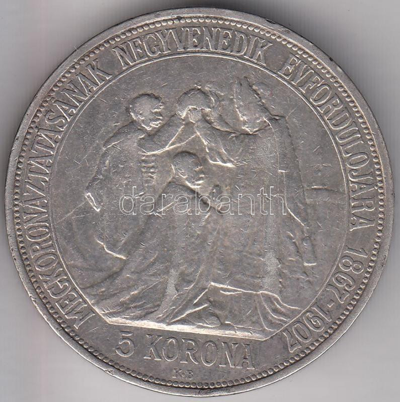 1907KB. 5K Ag "Koronázási évforduló" T:2- https://www.darabanth.com/de/190-Fernauktion/190.0/Numismatik/Ungarische-Munzen~600008/1907KB-5K-Ag-Koronazasi-evfordulo-T2-~II715150