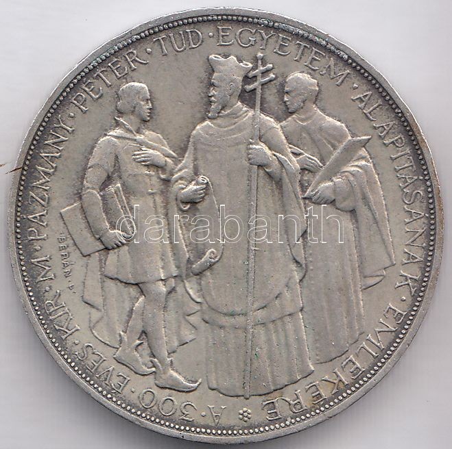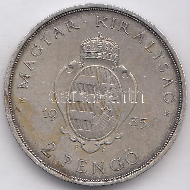 1935. 2P Ag "Pázmány" T:2- https://www.darabanth.com/de/190-Fernauktion/190.0/Numismatik/Ungarische-Munzen~600008/1935-2P-Ag-Pazmany-T2-~II712743