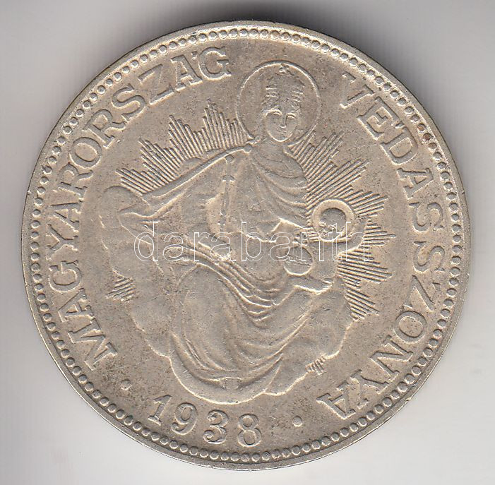 1938. 2P Ag "Madonna" T:2 https://www.darabanth.com/de/190-Fernauktion/190.0/Numismatik/Ungarische-Munzen~600008/1938-2P-Ag-Madonna-T2~II716967
