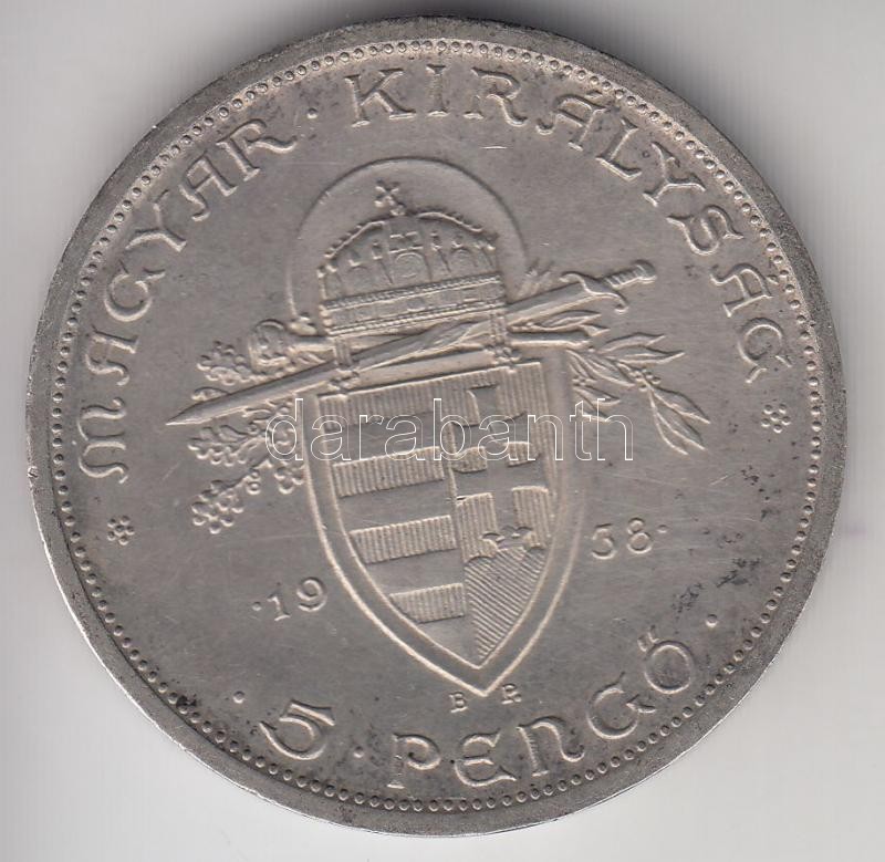 1938. 5P Ag "Szent István" T:2 https://www.darabanth.com/de/190-Fernauktion/190.0/Numismatik/Ungarische-Munzen~600008/1938-5P-Ag-Szent-Istvan-T2~II716887
