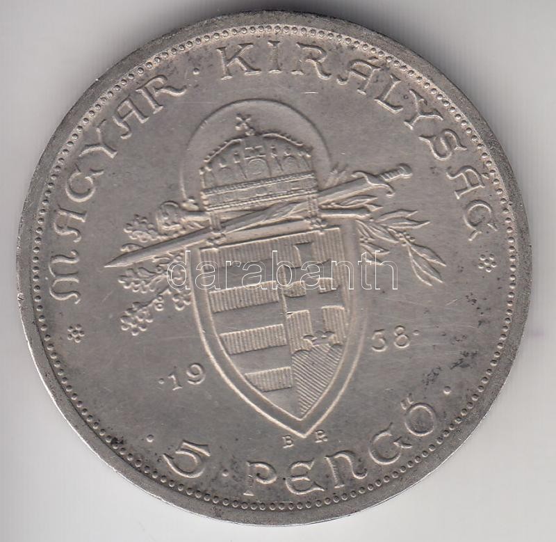 1938. 5P Ag "Szent István" T:2 https://www.darabanth.com/de/190-Fernauktion/190.0/Numismatik/Ungarische-Munzen~600008/1938-5P-Ag-Szent-Istvan-T2~II716888