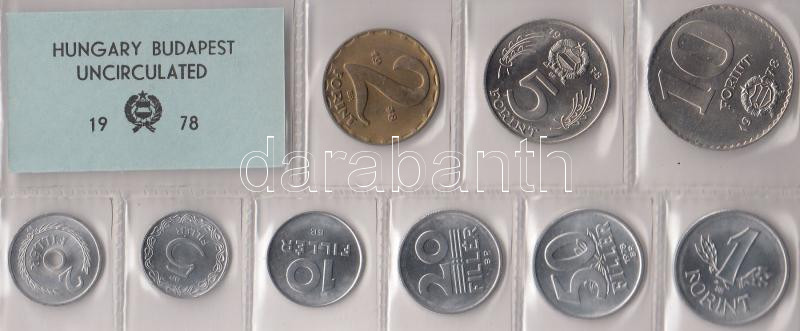 1978. 2f-10Ft 9db klf érmés forgalmi sor fóliatokban T:1 https://www.darabanth.com/de/190-Fernauktion/190.0/Numismatik/Ungarische-Munzen~600008/1978-2f-10Ft-9db-klf-ermes-forgalmi-sor-foliatokban-T1~II712761