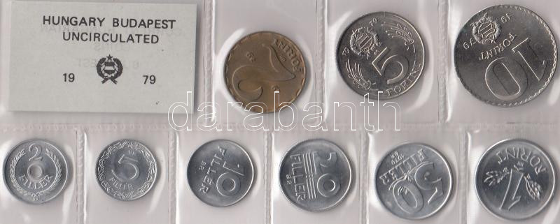 1979. 2f-10Ft 9db klf érmés forgalmi sor fóliatokban T:1 https://www.darabanth.com/de/190-Fernauktion/190.0/Numismatik/Ungarische-Munzen~600008/1979-2f-10Ft-9db-klf-ermes-forgalmi-sor-foliatokban-T1~II712762