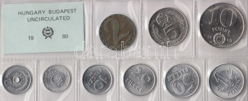 1980. 2f-10Ft 9db klf érmés forgalmi sor fóliatokban T:1 https://www.darabanth.com/de/190-Fernauktion/190.0/Numismatik/Ungarische-Munzen~600008/1980-2f-10Ft-9db-klf-ermes-forgalmi-sor-foliatokban-T1~II712763