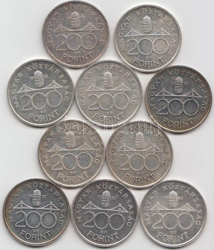 1992. 200Ft Ag "MNB" (10x) T:2 https://www.darabanth.com/de/190-Fernauktion/190.0/Numismatik/Ungarische-Munzen~600008/1992-200Ft-Ag-MNB-10x-T2~II716841