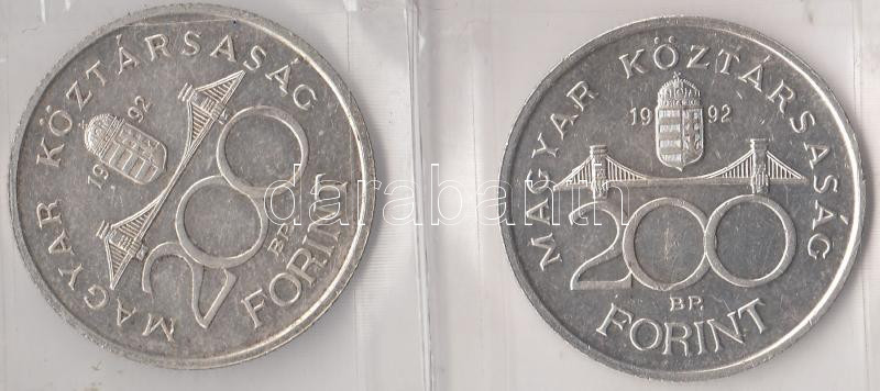 1992. 200Ft Ag "MNB" (2x) T:2 https://www.darabanth.com/de/190-Fernauktion/190.0/Numismatik/Ungarische-Munzen~600008/1992-200Ft-Ag-MNB-2x-T2~II710873