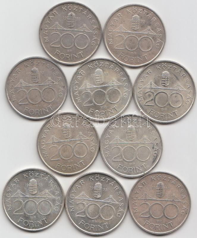 1993. 200Ft Ag "MNB" (10x) T:2 https://www.darabanth.com/de/190-Fernauktion/190.0/Numismatik/Ungarische-Munzen~600008/1993-200Ft-Ag-MNB-10x-T2~II716843