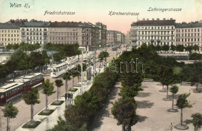 Beschreibung: Vienna, Wien I. Friedrichstrasse, Karntnerstrasse, Lothringerstrasse / street, tram (EK)