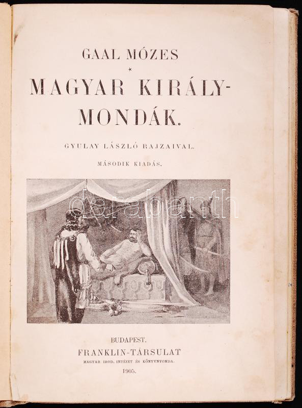 Gaal Mózes: Magyar király-mondák. Gyula László rajzaival, 2. kiadás, 1905, Budapest, Franklin-társulat, megviselt állapotban, dombornyomott egészvászon kötésben