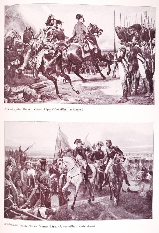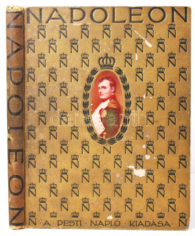 Napoleon album. I. Napoleon élete és kora, írók tanulmányaiban, festőművészek festményeiben és rajzaiban megvilágítva. A Pesti Napló előfizetőinek készült kiadás. Bp., é.n., [Pesti Napló]. Kiadói, aranyozott, dombornyomott, illusztrált egészvászon kötésben, az elülső kötéstáblán több folt látható, egyébként szép állapotú példány