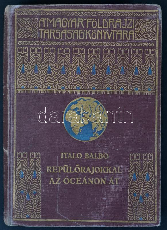 A Magyar Földrajzi Társaság Könyvtára: Italo Balbo: Repülőrajokkal az óceánon át. Ford. Révay József. 65 képpel és 1 térképpel. Bp., é.n., Lampel R. Kiadói, egységes, aranyozott egészvászon sorozatkötésben (gerinc kissé kopott)