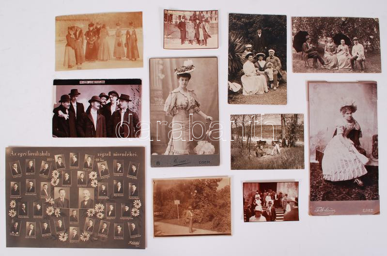 Beschreibung: 1899-1930 21 kfl méretű, régi fénykép Hevesi Sándor színészcsalád fotótékájából, főleg egri vonatkozású képek, némelyik megírt privát fotólap.