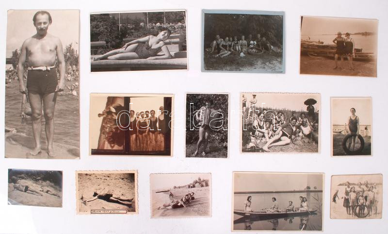 Beschreibung: 1900-1980 99 db kfl méretű fénykép a fürdőéletről, vízben, vízparton, fürdőruhában / Photos about bathing