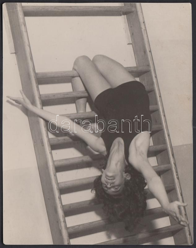 Beschreibung: 1931 Bauer Lilla, a Szentpál Olga mozdulatművészeti iskola növendéke lóg a bordásfalon, 17x13cm.