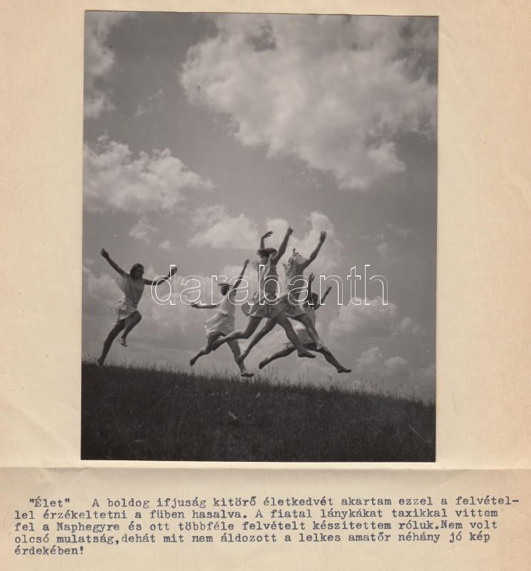 1935 Dr. Csörgeő Tibor (1869-1968): Élet. Vintage fotó, írógéppapírra ragasztva, alatta rövid, géppel írt szöveg a szerzőtől a kép keletkezési körülményeiről (jelzés nélkül, de garanciával), 18x13cm