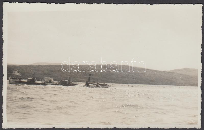 1940 A zátonyra futott "Duna" tengeri áruszállító gőzhajó roncsairól készült képesfotólap. A hajó a Fekete Tengeren futott zátonyra Podima közlében. / 4 photo-card of the sea-steamer "Duna" snagged on the Black Sea near Podima. 13x8 cm