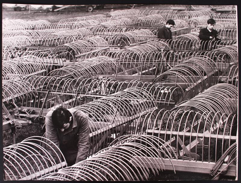Beschreibung: 1972 Traktoros gereblyék Törökszentmiklóson (feliratozott, 30x40 cm-es fotó