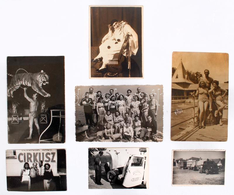 Beschreibung: Cca 1929-1960 7 db fotó, fotóképeslap cirkuszi életről és a társulatról