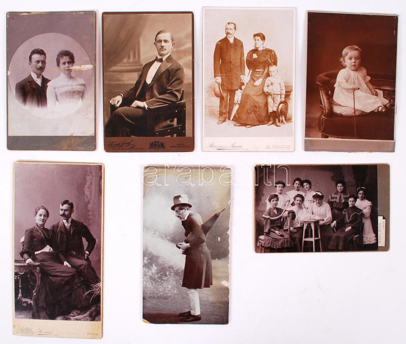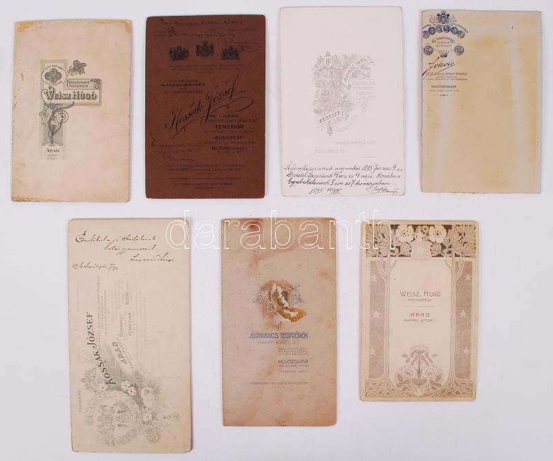 cca 1880-1900: 11 db kfl méretű keményhátú fotográfia az erdélyi fotótörténet leleteiből, kfl műtermekből (Arad, Kolozsvár, Nagyvárad...)