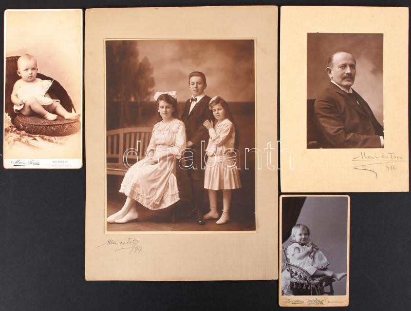 Beschreibung: cca 1900-1920 Mai Manó műterméből származó 4 db fotó, kettő keményhátű, különböző verzóval, kettő aláírt