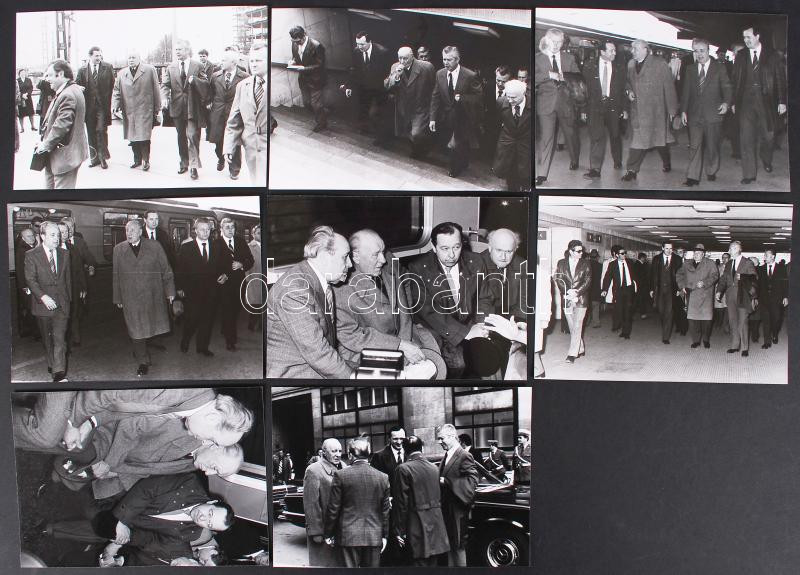 Beschreibung: cca 1980 8 db 10x15 cm-es fotó Kádár Jánosról, aki a metrón utazva kereste fel a Sugár üzletközpontot, számos kísérő társaságában