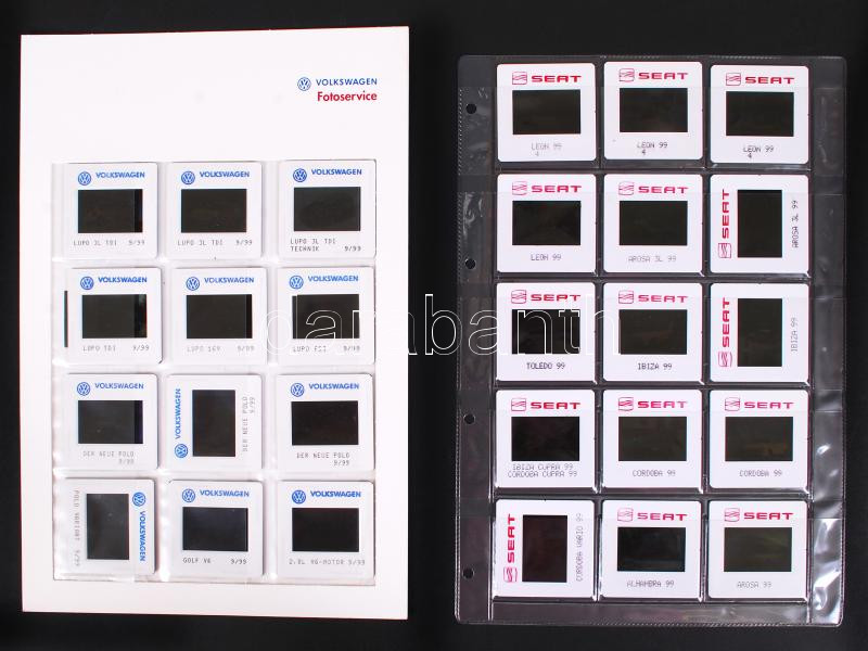 Beschreibung: cca 1990 79 képpel illusztrált modern autós tétel; 40db papírkép és 39db színes dia SEAT és Volkswagen modellekről