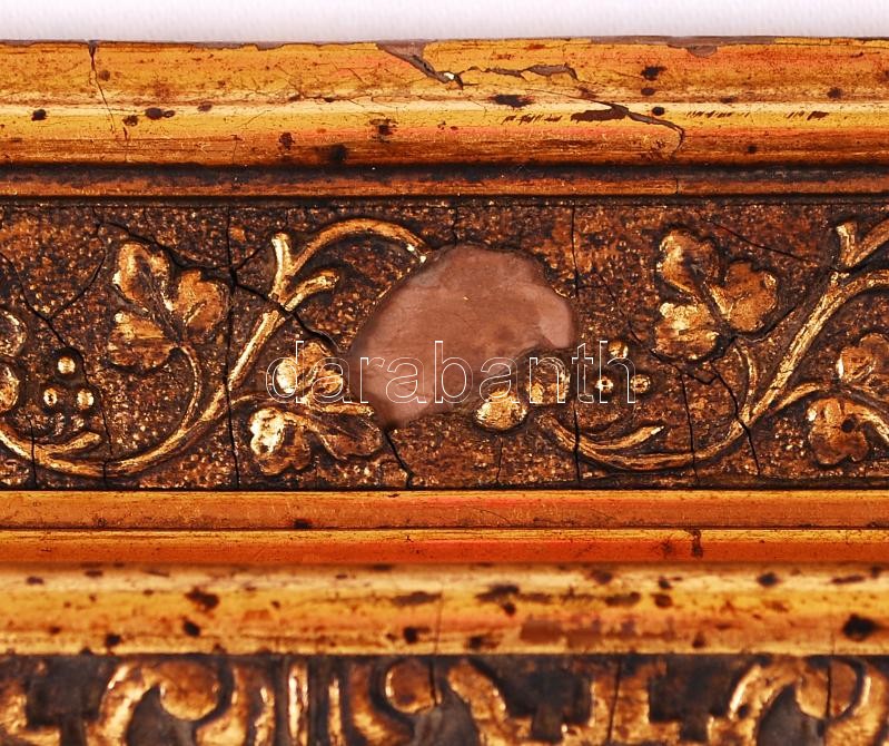 Beschreibung: Jelzés nélkül: Női portré. Olaj, vászon, antik sérült keretben, 52×42 cm
